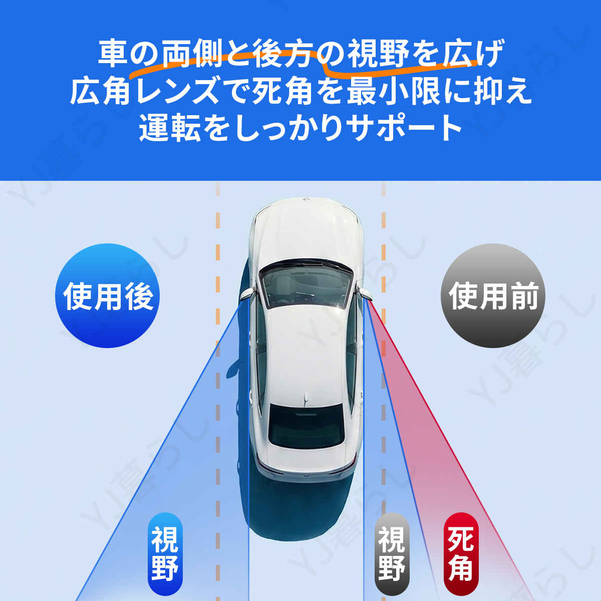 車の両側の視野が広がり、後方も見やすくなって運転しやすくなります。