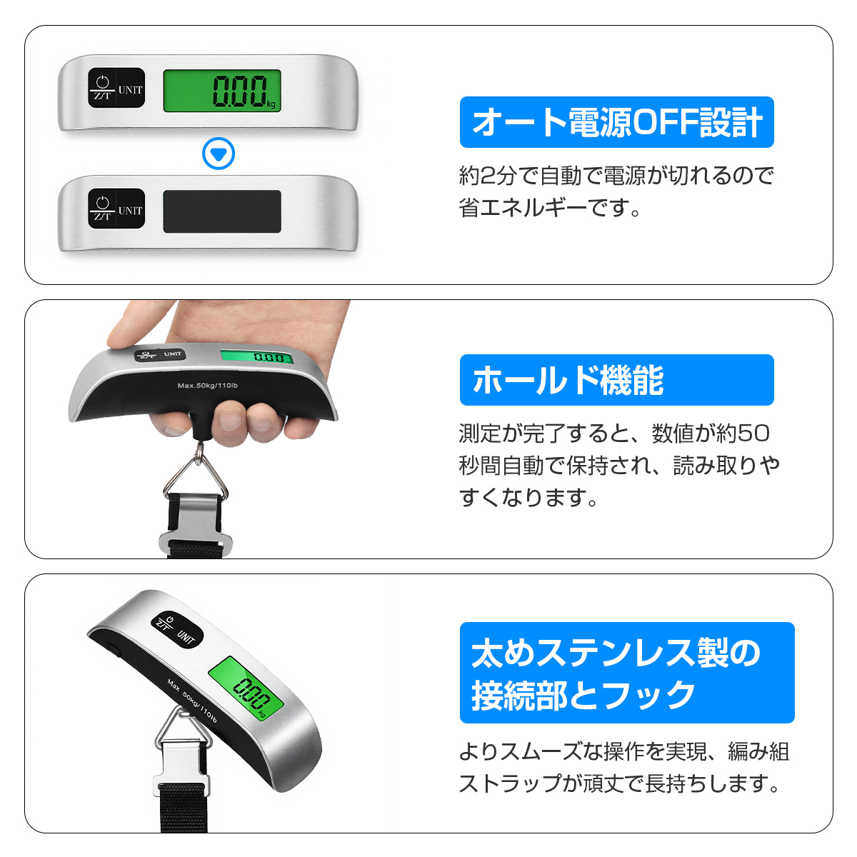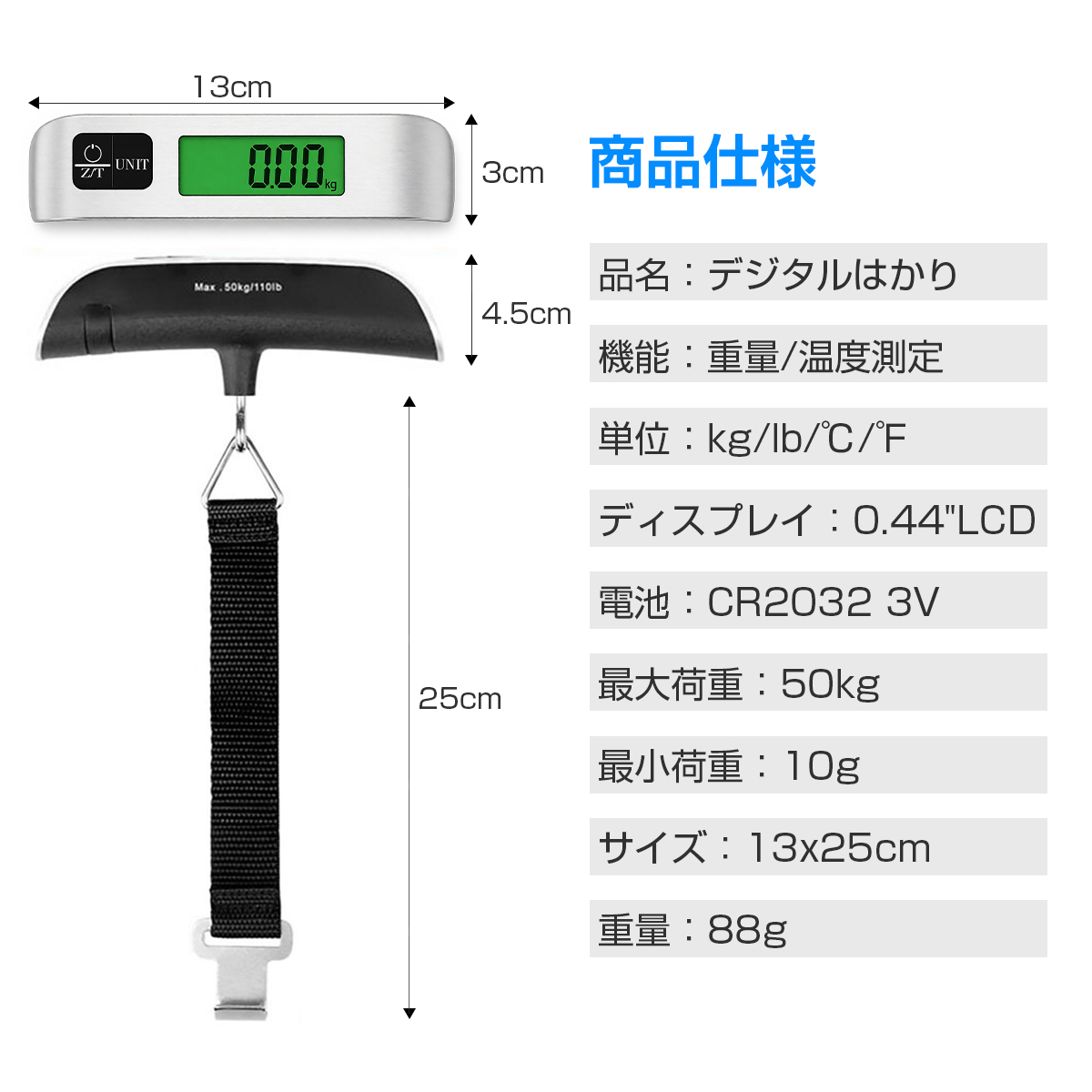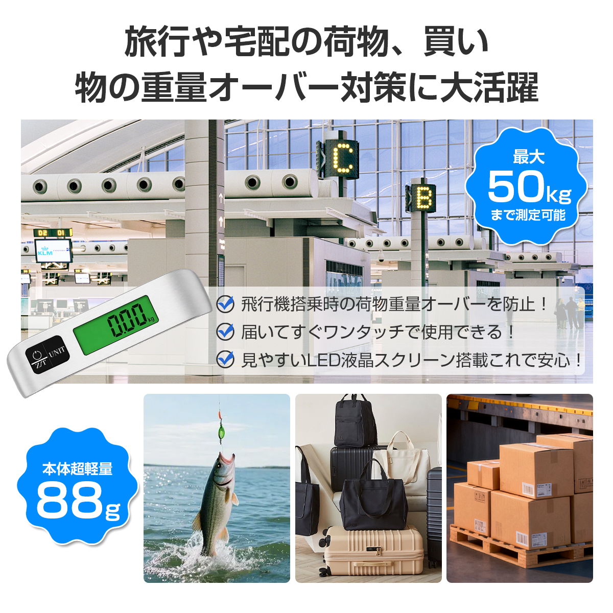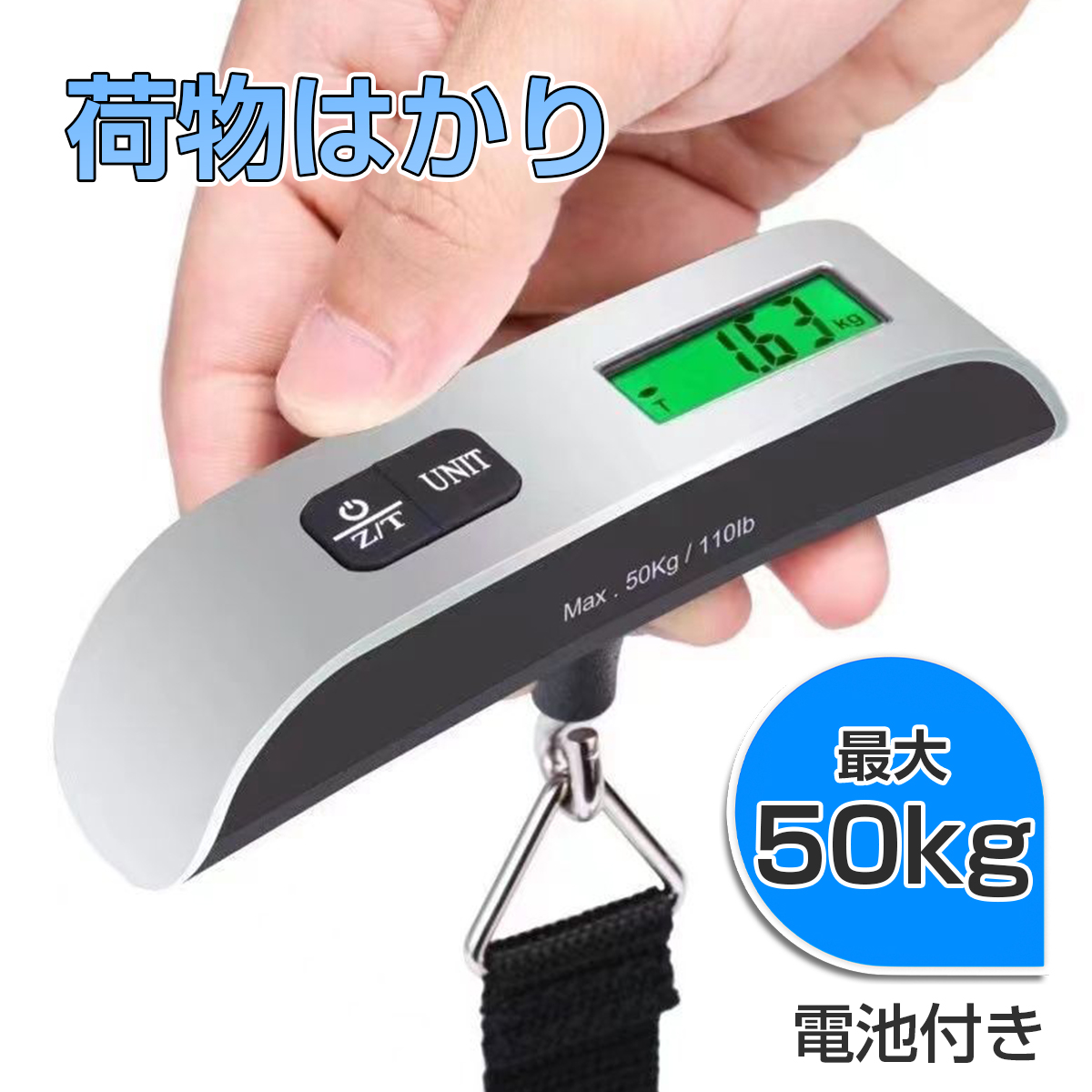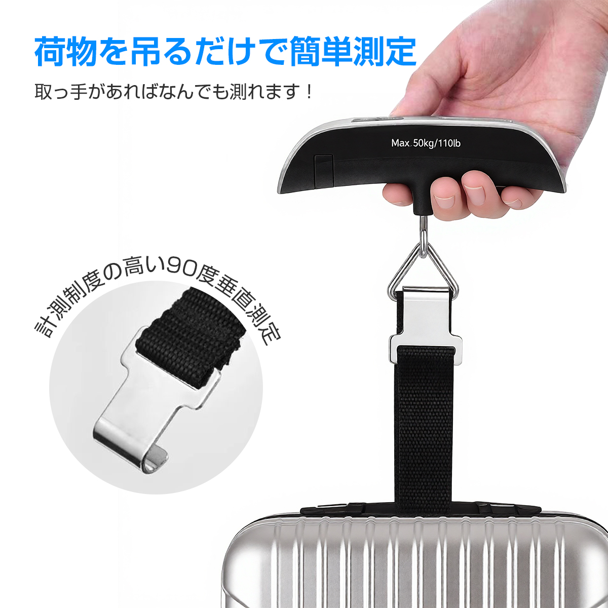 荷物はかり ラゲッジスケール ラゲッジチェッカー スーツケース 重さ 測る スーツケース はかり コンパクト デジタルはかり 最大荷重50kg 携帯式