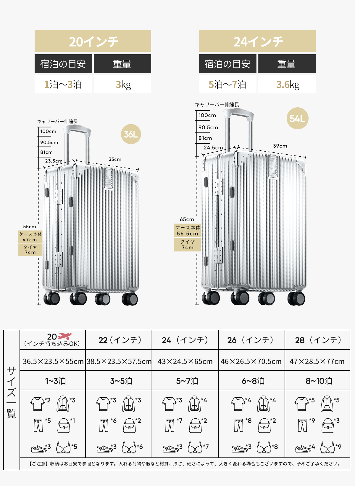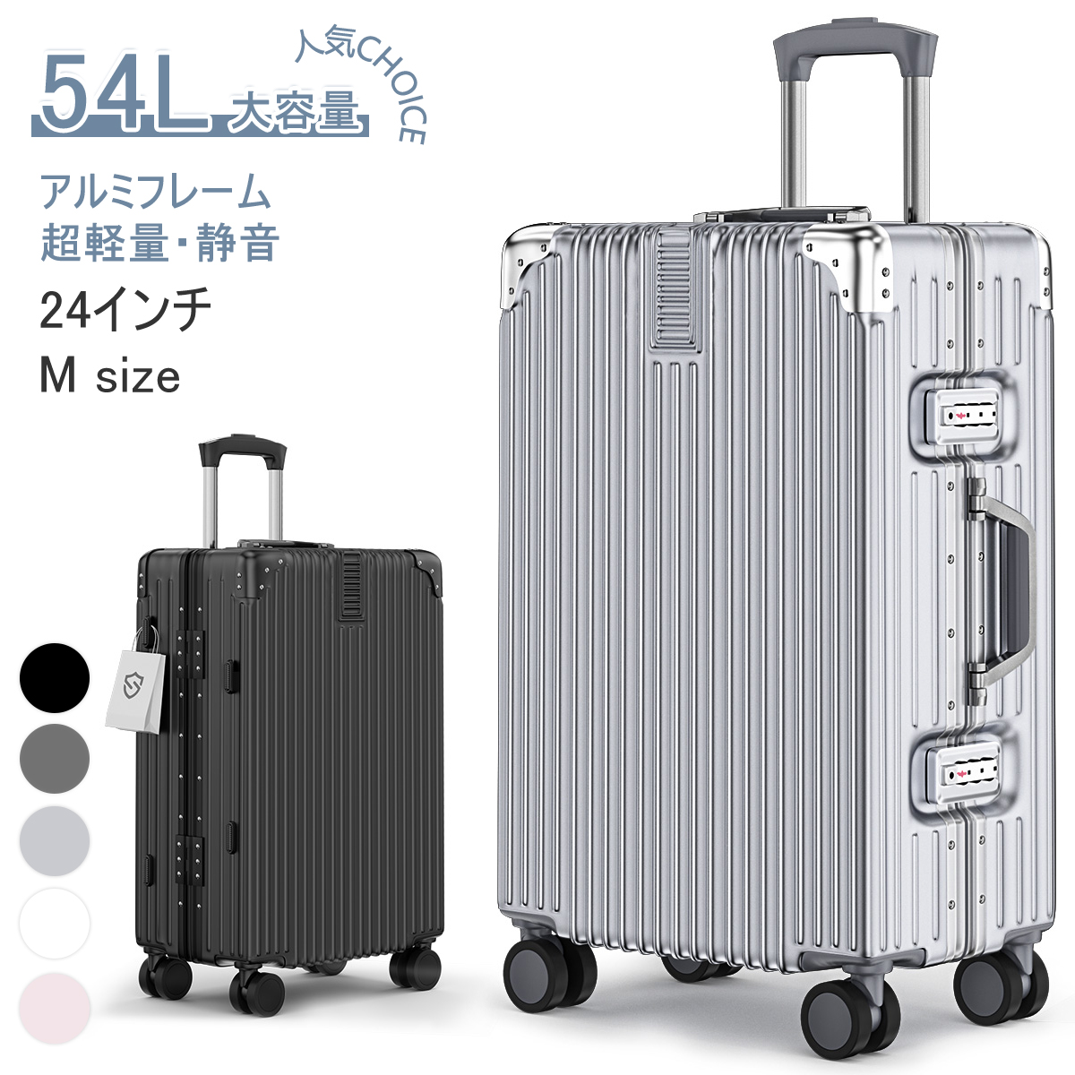 \15%OFFセール/Seelove スーツケース キャリーケース Mサイズ 24インチ 54L アルミフレーム 軽量 大型 大容量 プレゼント 家族 修学 旅行 避難防災 1~5日泊