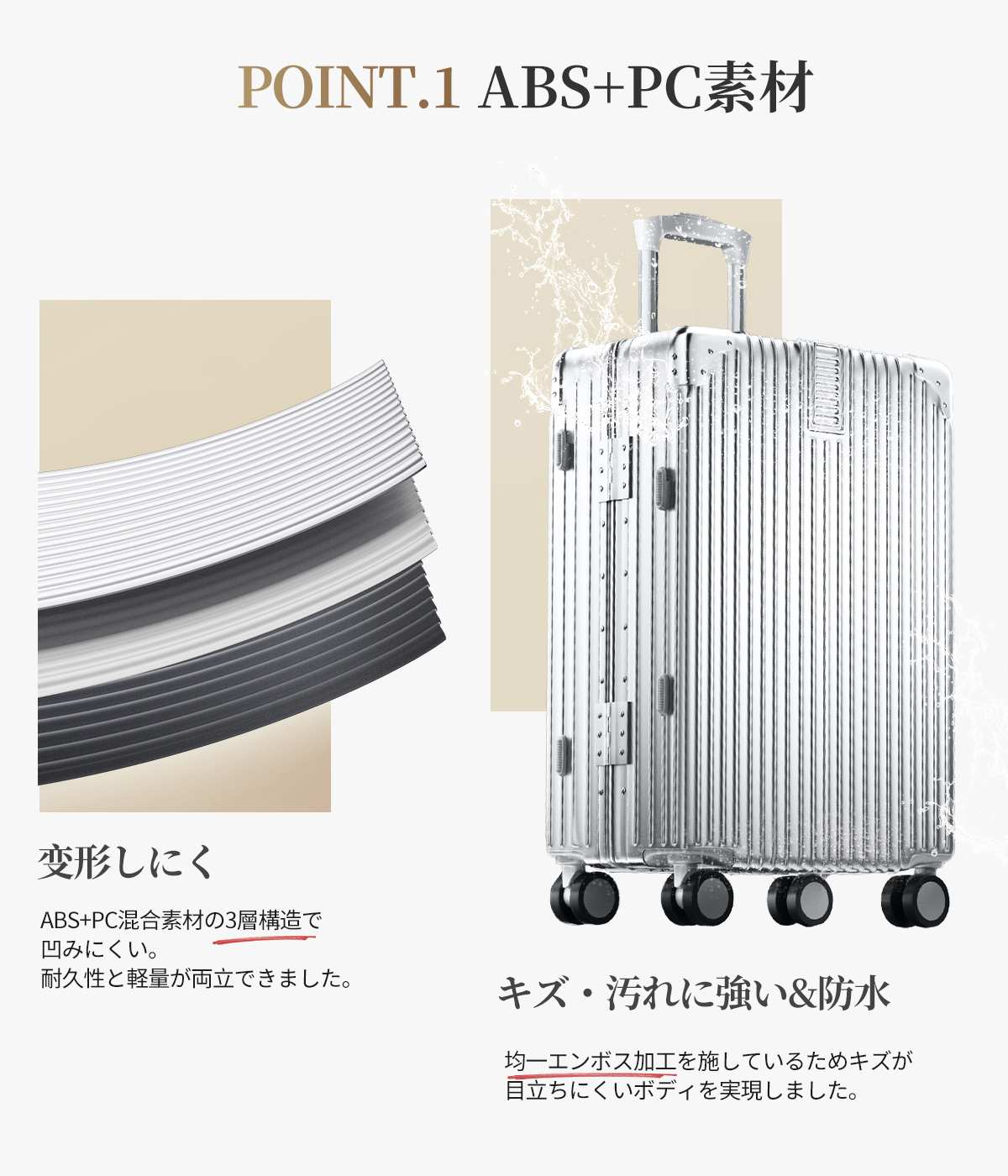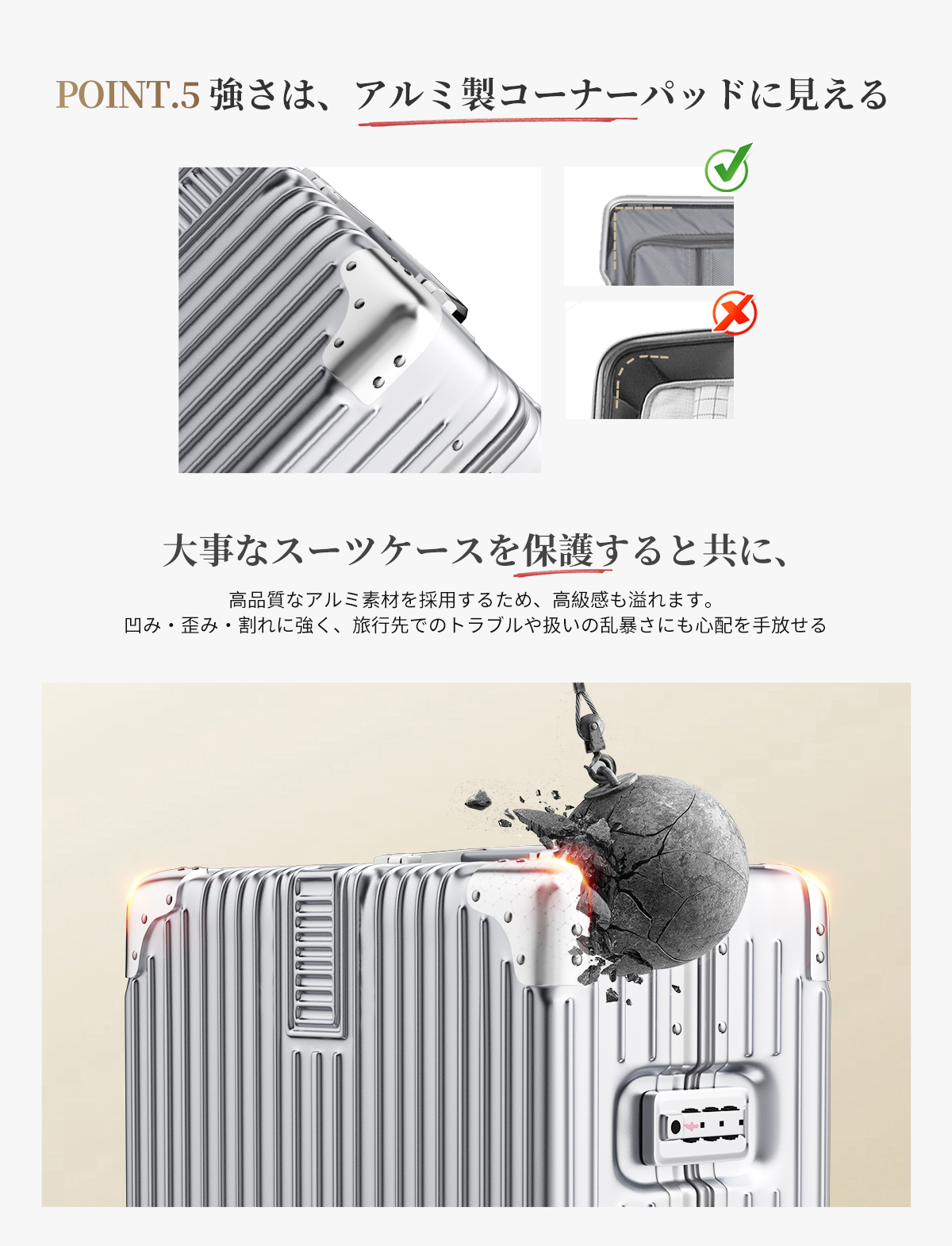 最強耐衝撃性:ABS樹脂とPCでの混合素材を採用しいるボディ、アルミ製フレーム、より耐衝撃性に優れています。