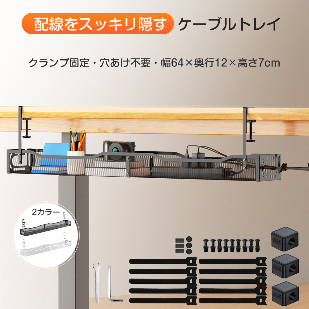 【15%OFFセール】ケーブルトレー クランプ式 配線隠し 配線トレー ルーター コンセント収納 デスク下 ケーブルホルダー ケーブルオーガナイザー 幅64cm/40cm