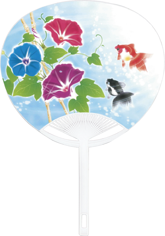 うちわ裏側に軽オフセット印刷できます。印刷代1本につき:1色62円/2色108円