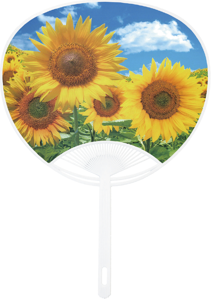 うちわ裏側に軽オフセット印刷できます。印刷代1本につき:1色62円/2色108円