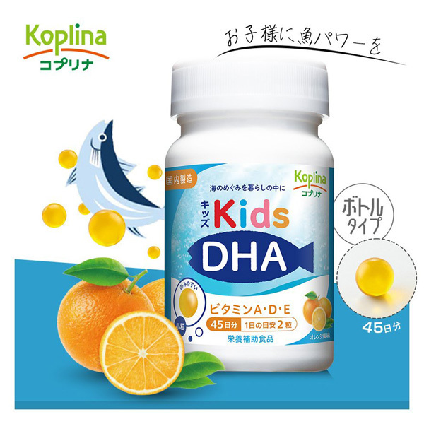 キッズDHA ビタミンA・D・E配合 [ボトル] 90粒 1個45日分 (小粒/子育て/DHA&EPA/子供/健康/おいしいサプリ/魚不足/成長期/栄養/国内製造)