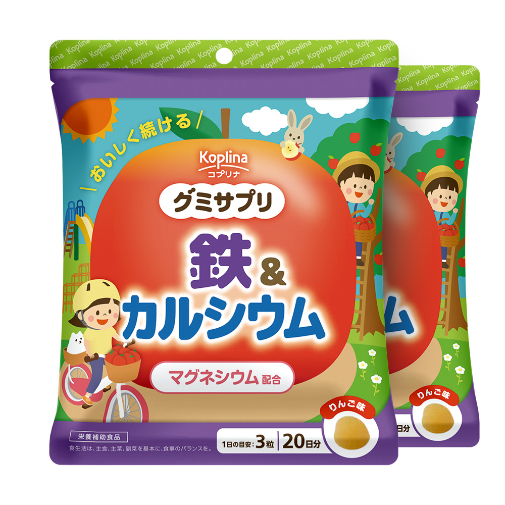グミサプリ 鉄&カルシウム(りんご味) 120粒 40日分 2個セット 果汁入り おいしい ミネラル 子ども 健康 サプリメント 栄養補助食品 安心国内製造 コプリナ