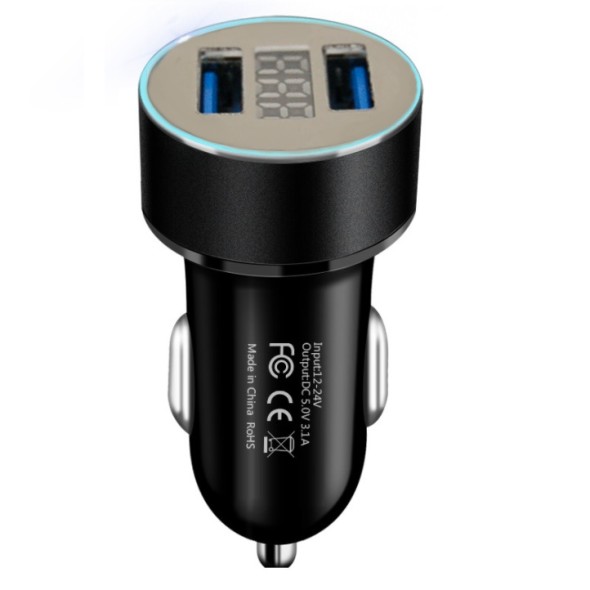 【並行輸入品】USB2ポート カーチャージャー 《ブラック》 シガーソケット スマホ 合計3.1A 急速充電 電圧計 車載 12V 24V(定形外郵便、送料別商品)