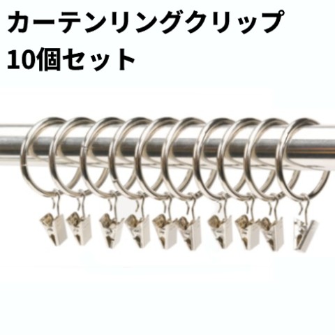 【並行輸入品】カーテンリング クリップ 10個セット 内径38mm カーテンクリップ付き 小窓 目隠しカーテン カフェカーテン(ゆうパケット、送料別商品)