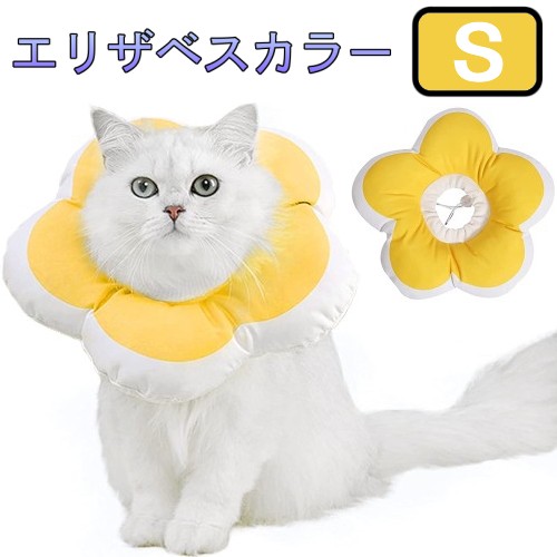 【並行輸入品】犬 猫 花型 エリザベスカラー 《Sサイズ イエロー》 軽量 術後 傷口保護 舐め防止 かわいい(定形外郵便、代引不可、送料別商品)
