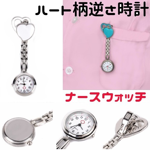 【並行輸入品】ハート柄 逆さ時計 ナースウォッチ 《ホワイト》 看護師時計 レディース かわいい おしゃれ 時計(定形外郵便、送料別商品)