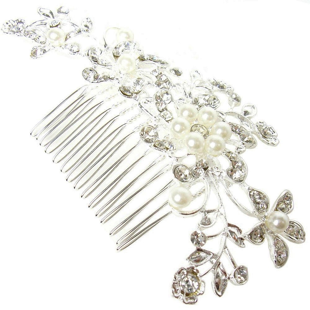 【並行輸入品】ウェディング パール 髪飾り 花柄 ヘアコーム ヘアピン かんざし 結婚式 卒業式 フォーマル(定形外郵便、送料別商品)
