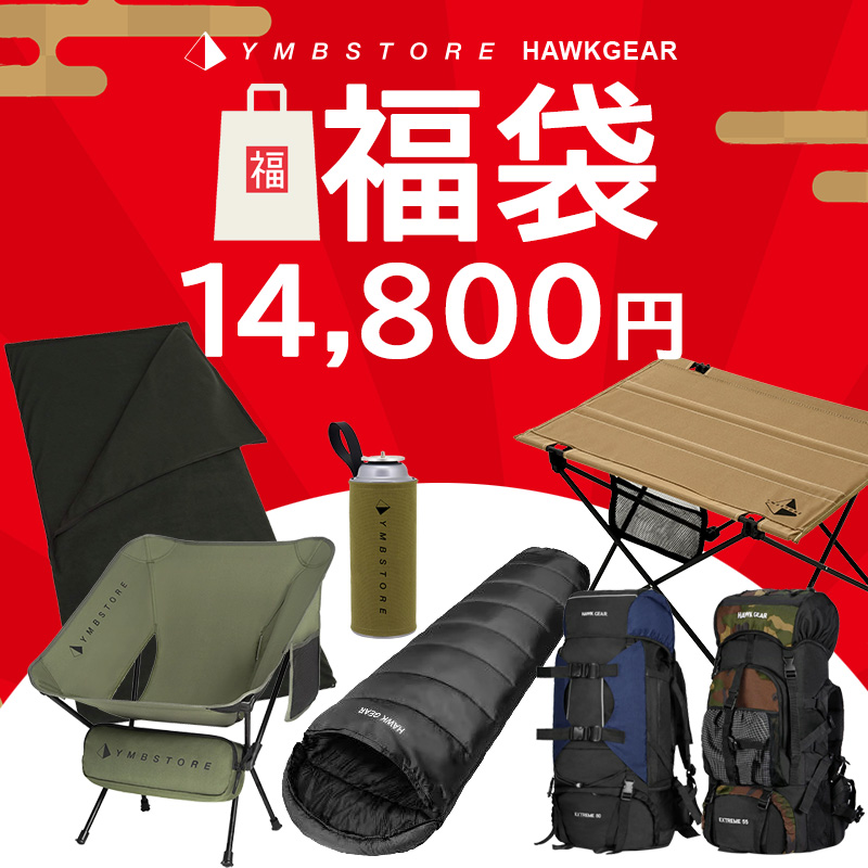 福袋 2026 アウトドア HAWKGEAR YMBSTORE ホークギア メンズ レディース アウトドアチェア 寝袋 アウトドアテーブル シュラフ キャンプ ソロキャンプ