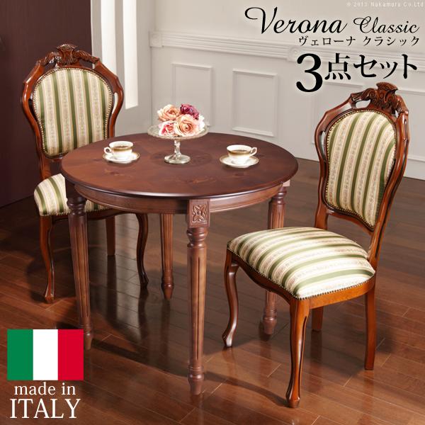 イタリア 家具 ヴェローナクラシック ダイニング3点セット:テーブル幅90cm+チェア-グリーン2脚 猫脚 輸入家具 アンティーク風 イタリア製 おしゃれ 高級感 在宅