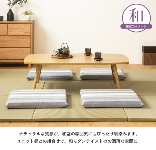 | 商品のポイント シンプルなデザインとぬくもりのある佇まいが、 長く愛されロングセラーになっている折りたたみ座卓テーブル「膳/ゼン」から、デザイン性を高めたモダンタイプが新登場。 和室にも洋室にも合わせやすく、幅広い年齢層、様々なライフスタイルにマッチ。 大人4〜6人でお使いいただける大判サイズで、ご家族のだんらんの中心にぴったりです。 脚部が折りたためるため移動が簡単で、来客時のテーブルとしてもご利用いただいている方も多く、 お盆前や年末年始の前には特に人気です。 天板はキズや汚れに強いUV塗装仕上げで、綺麗な状態で長くご愛用いただけます。 | |