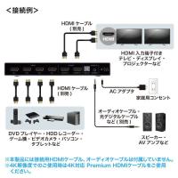 | インターフェース | 入力用/HDMI タイプA(19PIN)メス×4 出力用/HDMI タイプA(19PIN)メス×2 音声出力/3.5mmステレオミニジャック×1、Toslink×1 |