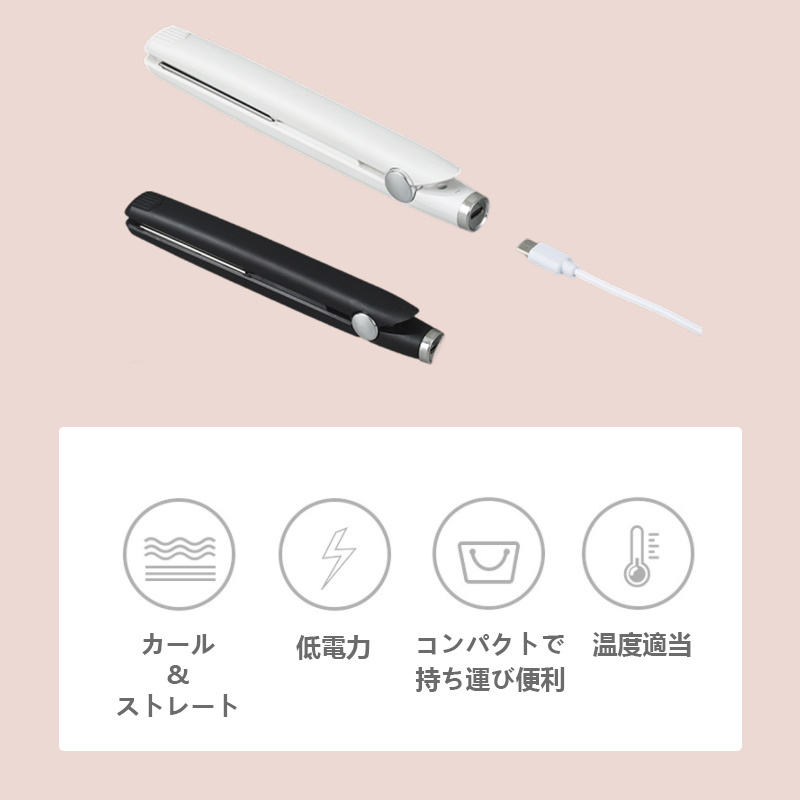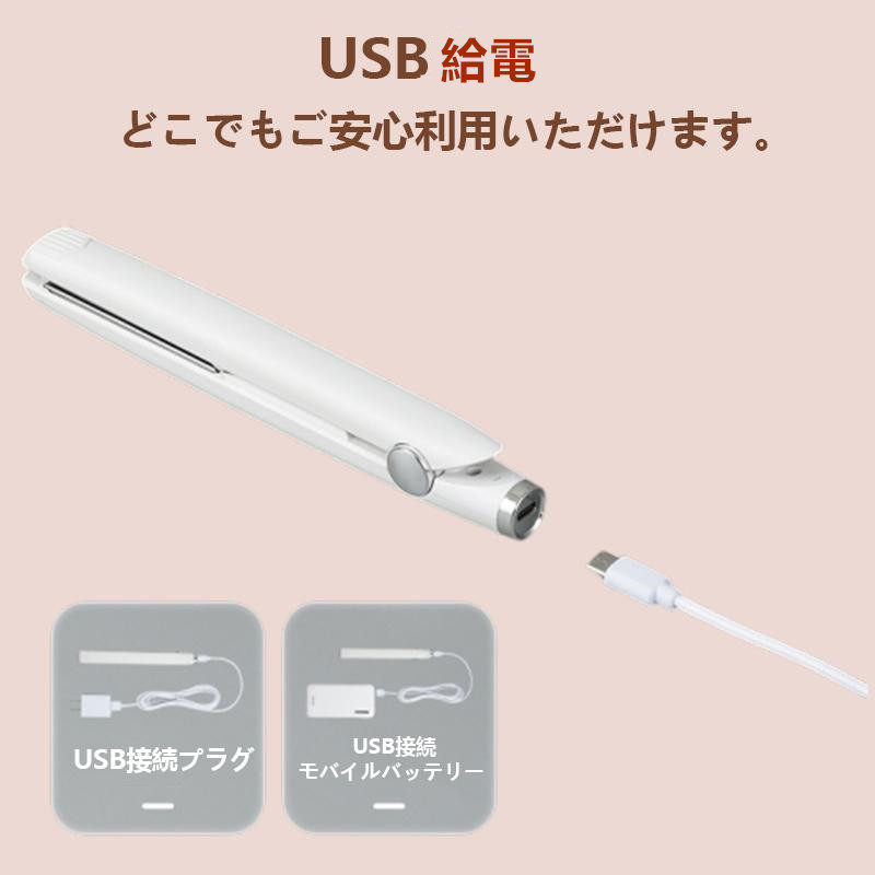 ヘアアイロン ストレートアイロン 2way ストレートカール ワンタッチ カールアイロン ストレートヘアアイロン 女性 USB給電