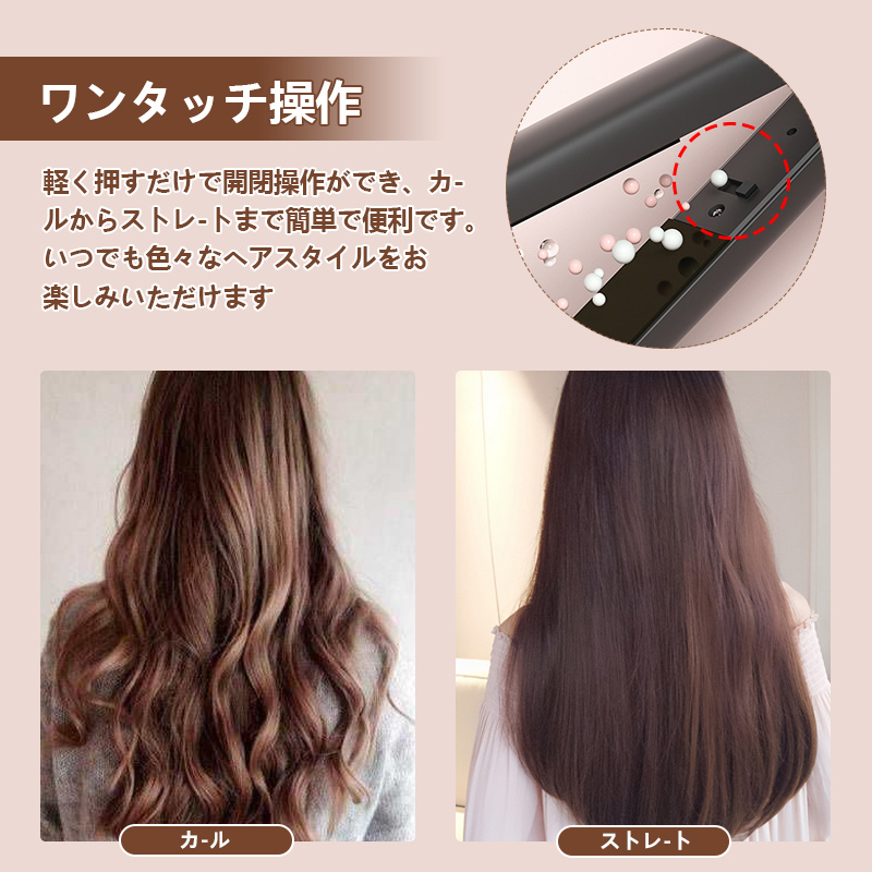 手元のワンタッチ式の切替ボタンで、簡単にカールとストレートを切替えることができます。