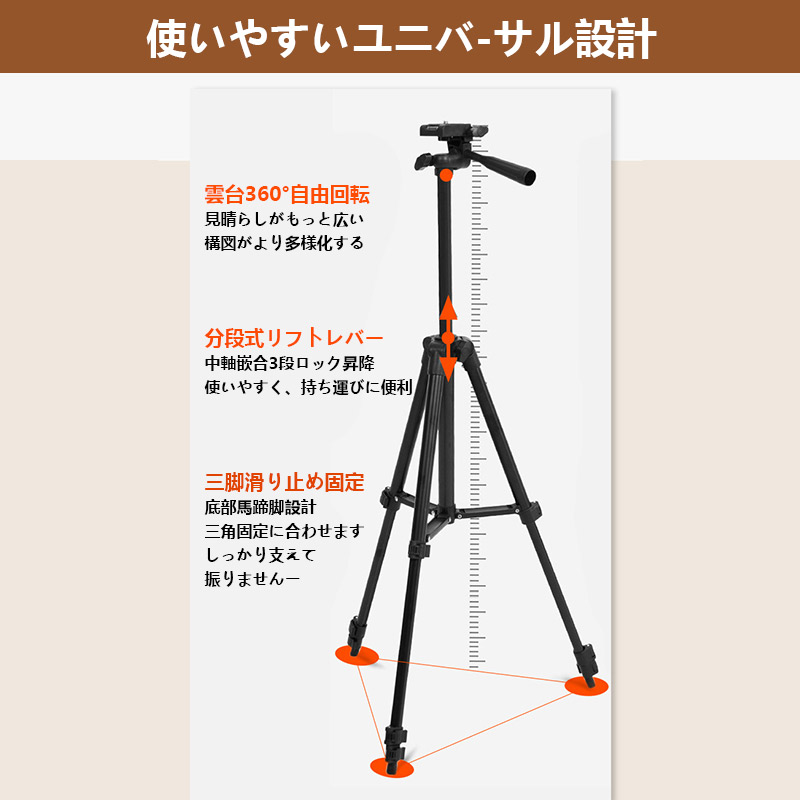 三脚 三脚スタンド スマホ ビデオカメラ カメラ三脚 3段階伸縮 360度回転 3WAY雲台 撮影 カメラ 一眼レフ 自撮り 伸縮式 折り畳み ライブ配信 生放送