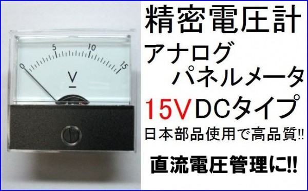 手軽に利用できるアナログ電圧計です。独立型ソーラー発電システムへの組込みにも最適です!!15Vフルスケール 最小目盛単位:500mV ◆良品質なので安心して、自作派のメーターとしてご利用ください。