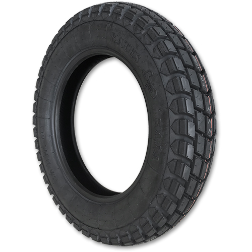 Here’s a scrambler tire right on the tracks of the legendary Goodyear Grasshopper,
