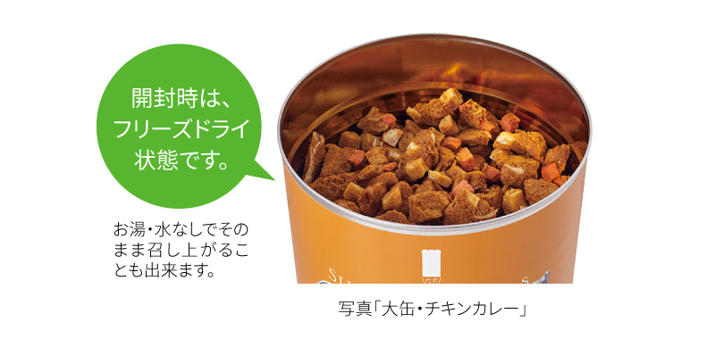| 1セット:約60食相当(4人家族で約5日間)分 1缶(大缶):約10食相当 |