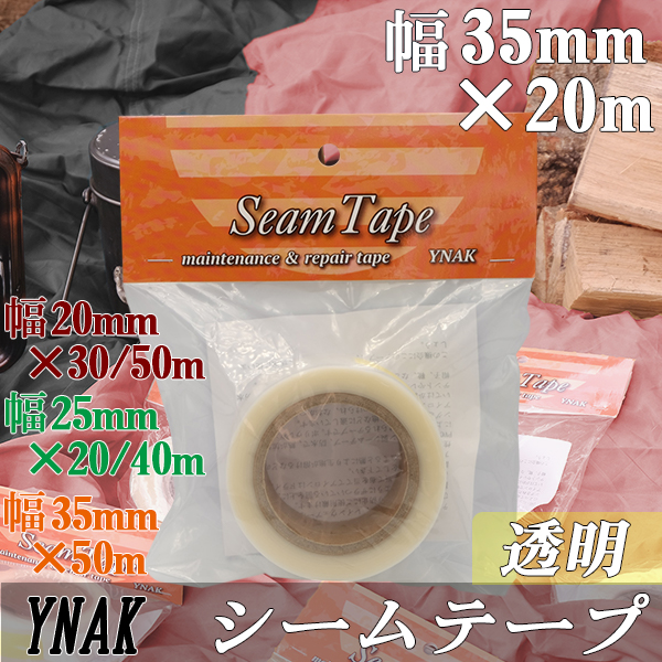 テント裏地などのPU,PVCコーティングに融着する透明/黒色シームテープです。サイズ違いは別販売ページにあります。※この画像は幅35mmのものです。