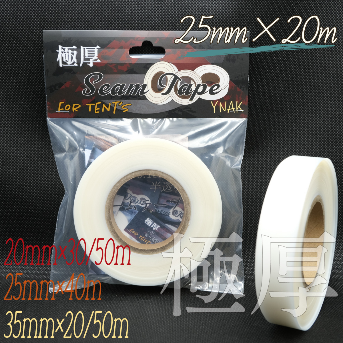 シームテープ 極厚 テント ザック タープ シート レインウェア 補修 メンテナンス 用 強力 アイロン接着 厚さ0.18mm 幅25mm×20m YNAK