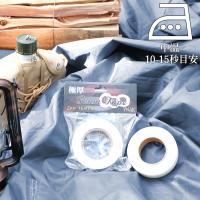 ※撥水加工されたテント表面や、シリコン系などの撥水剤、潤滑剤を塗布した生地には接着することができません。<アイロンを直に当てると熱により生地が溶けるなどの可能性があります。<レジャーシート等のPE(ポリエチレン)製クロスへの加工は生地が溶けるなどの可能性があります。