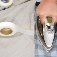アイロンはドライ設定、中温程(10-15秒目安)で作業、強く接着するとテープの脇から糊がはみ出ます。温度が低いと接着後、剥がれる場合があります。作業環境が違う為、時間温度調整等をお願いいたします。