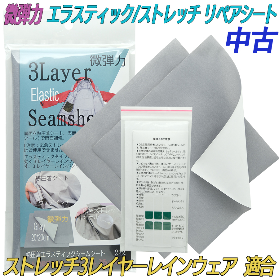 中古 シームテープ シート型 3 Layer レインウェア 表裏地 リペア 熱圧着と粘着シール (エラスティックシート 20×20cm 2枚) (ストレッチシール 7×15cm 4枚)