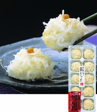 呼子で生まれた名物いかしゅうまいです。ふんわりとした食感が自慢の逸品です。