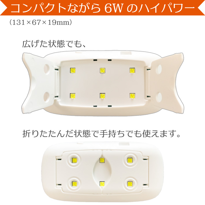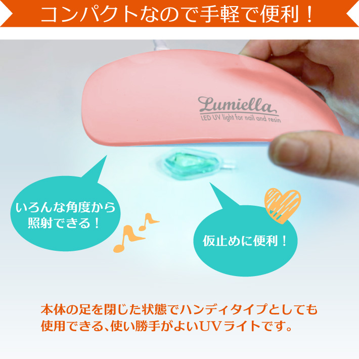 たためるスタンドでハンディタイプとしても使用可能。レジン作品のちょっとした仮止めに便利!バックに入るコンパクトサイズなので旅先でも簡単セルフネイル!