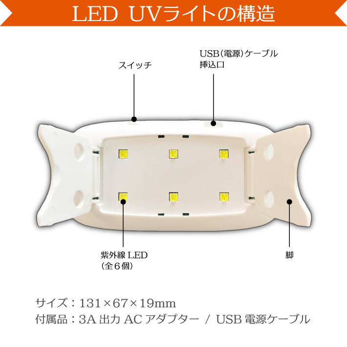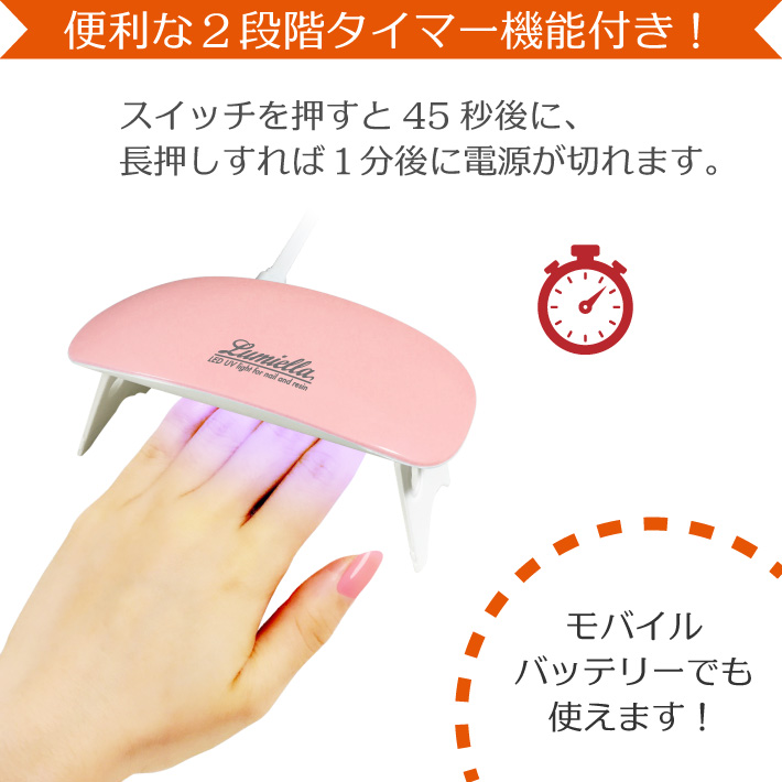 モバイルバッテリーで使用可能・コンパクトで持ち運び便利なUSBタイプ・ジェルネイルやレジン液の硬化にも!