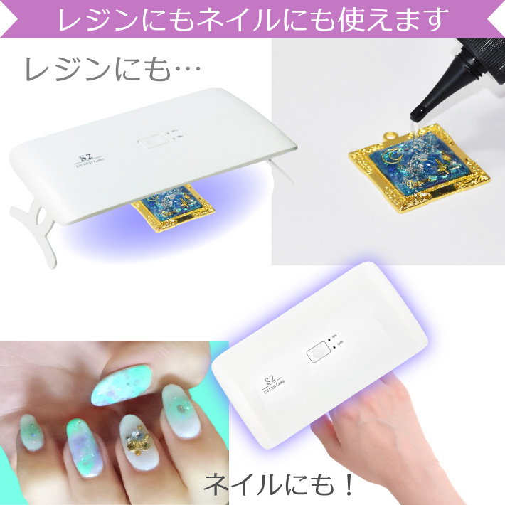たためるスタンドでハンディタイプとしても使用可能。レジン作品のちょっとした仮止めに便利!バックに入るコンパクトサイズなので旅先でも簡単セルフネイル!