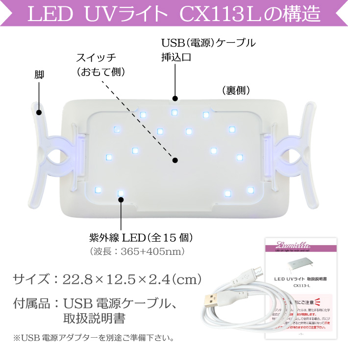 UV LED ライト 充電式 ネイル レジン ネイルドライヤー タイマー付 折りたたみ式 CX113-L