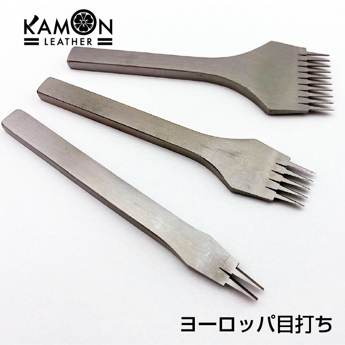 ヨーロッパ目打ち 3.38mm巾 2・5・10本目 3本セット レザークラフト 穴開け 工具