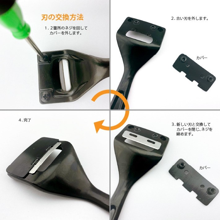 【刃の交換方法】画像をご参照ください。怪我をしないよう刃の扱いには充分ご注意ご注意ください。
