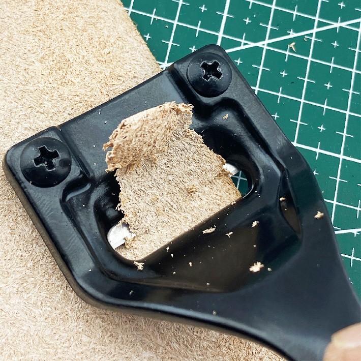 レザークラフト用 革の床面を漉いて厚みを調整する道具。