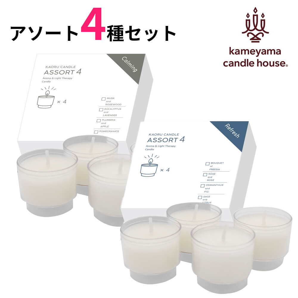 4種類の香りを試せる「香るキャンドル」のアソートセット。アロマの香りを4種類お楽しみいただけます。香るキャンドルのお気に入りの香りを探すにもぴったりです。プチギフトとしてもお喜びいただけるアイテムです。
