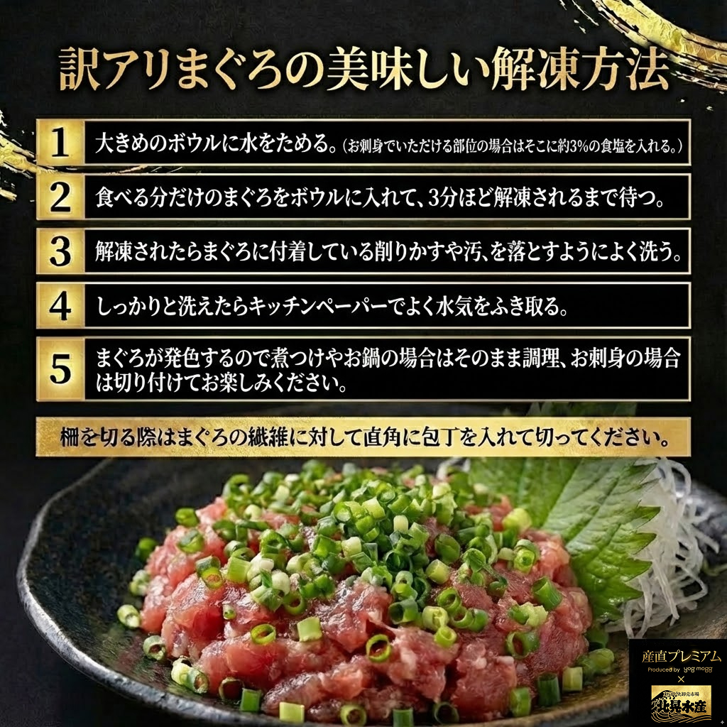 訳アリといえ天然の本マグロまたは天然のメバチマグロ。