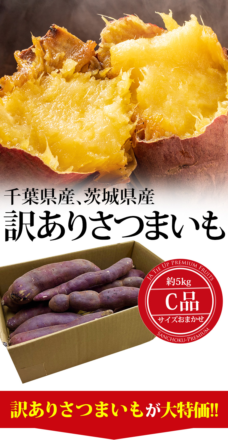 2箱以上ご購入で1,000円OFF さつまいも 千葉県・茨城県産 訳あり C品 約5kg サイズおまかせ 爆買