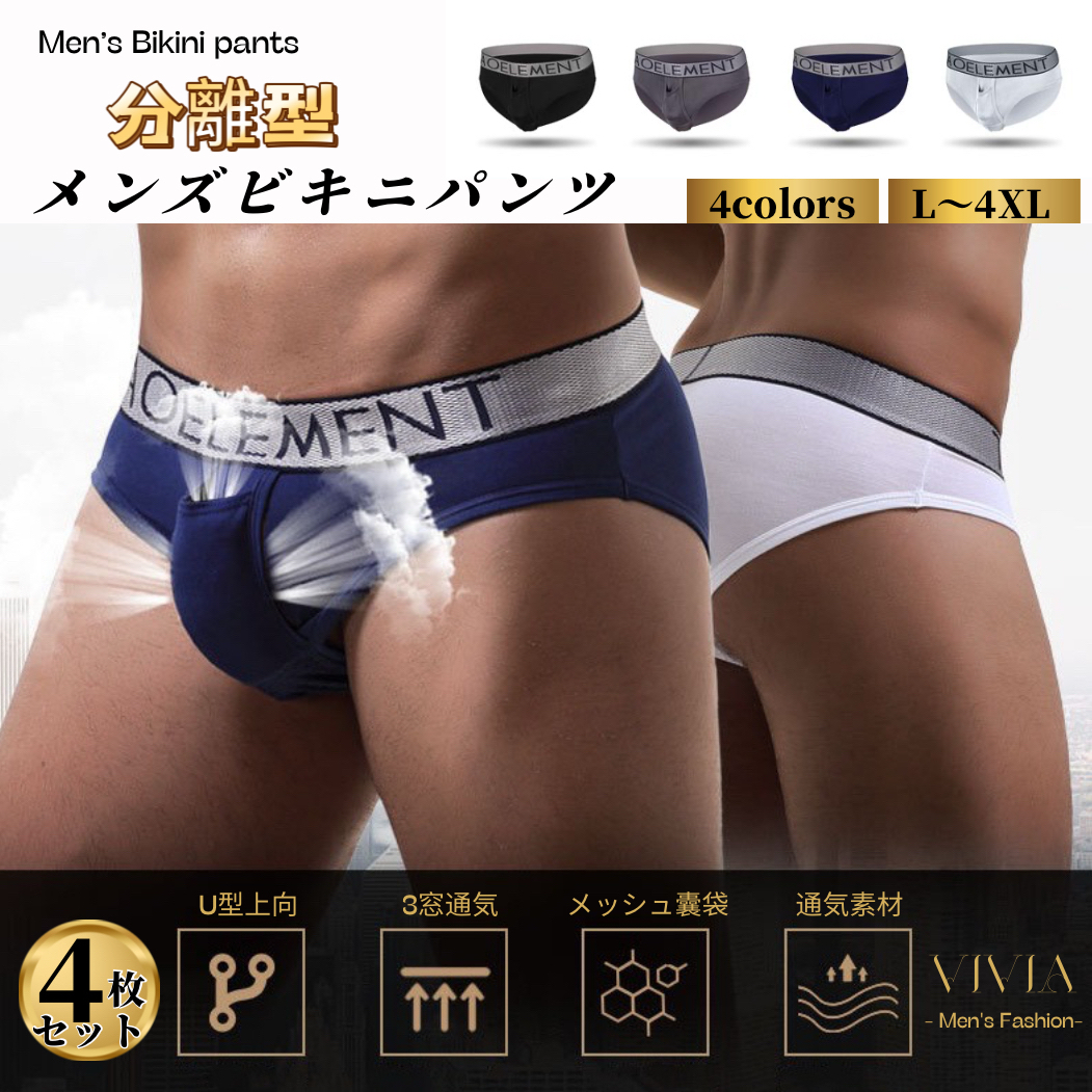 ビキニパンツ メンズ ブリーフ 男性 下着 紳士 陰嚢分離型 前閉じ ストレッチ 大きいサイズ コットン 通気性抜群 新感覚 綿 無地 2L 3L 4L 5L 福袋 2枚組 4枚組