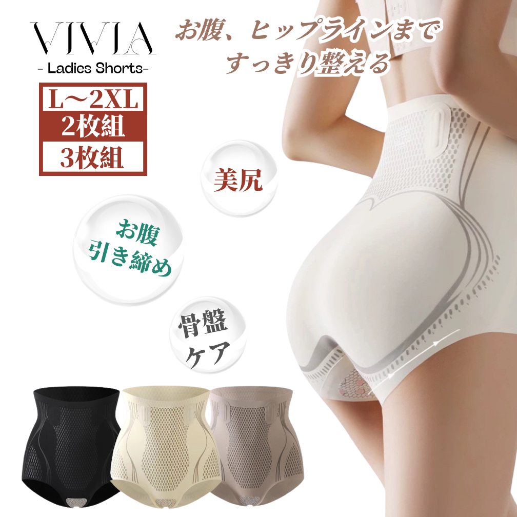 ガードルショーツ 骨盤ショーツ 深履き 補整 補正 美尻 ヒップアップ レディース ショーツ パンツ 下着 インナー ハイウエスト L LL 3L セール 2枚 3枚組 FU04
