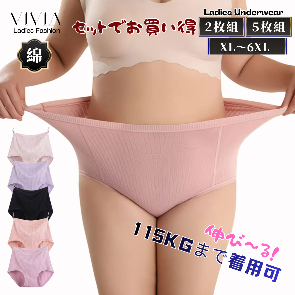 レディースショーツ 大きいサイズ 女性下着 スタンダード コットン ストレッチ 超盛 柔らか肌着 LL 3L 4L 5L 6L 7L 無地 深履き 極伸び 2枚組 5枚組 セット 爆買