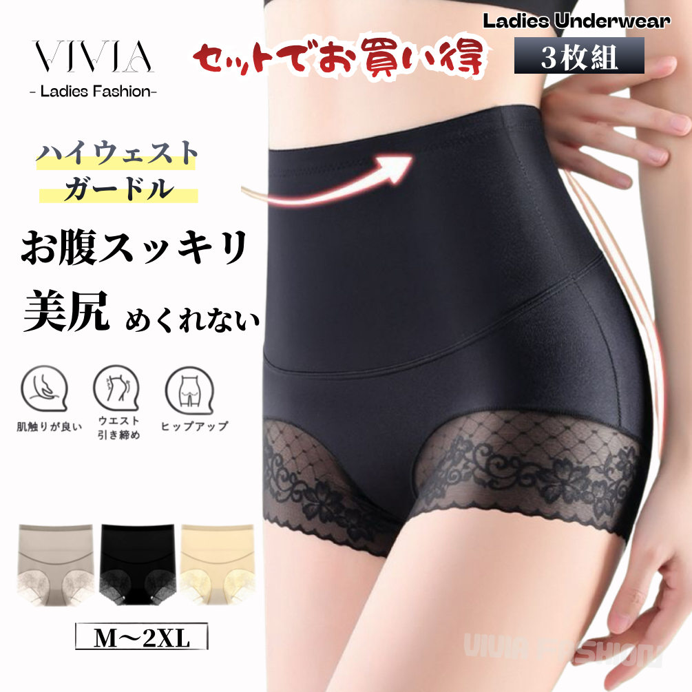 ガードルショーツ ハイウエスト 補整 美尻 骨盤ショーツ ヒップアップ お腹引き締め 大きいサイズ 着圧 深履き フィット くびれメイク M L LL 3L 3枚セット お得