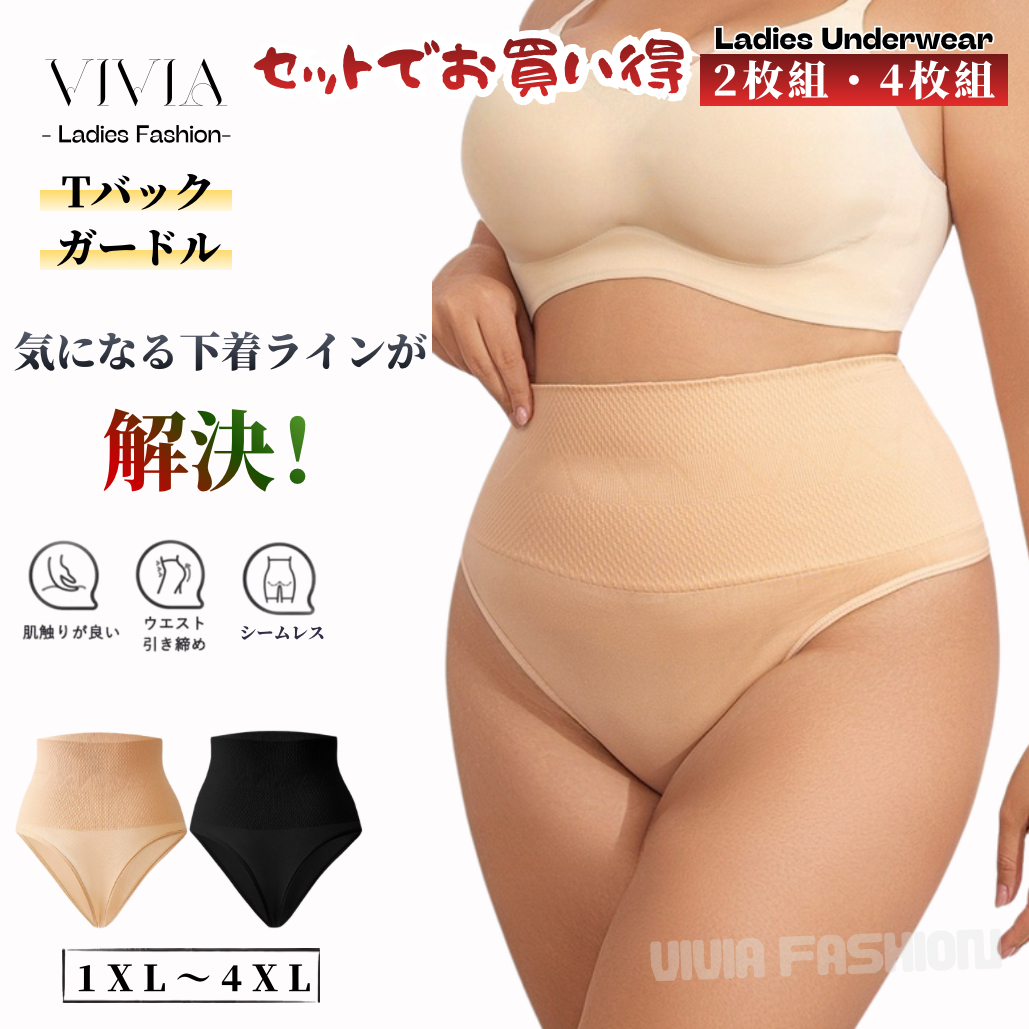 ガードルショーツ Tバックガードル ハイウェスト シームレス 補整 補正 お腹引き締め 大きめ セクシー 深履き 肌に優しい 圧迫感ゼロ XL-4XL 2枚組 4枚組 お得