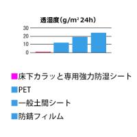 ★従来の土間シート、ポリエチレンフィルムと比べ15倍以上の防湿性能