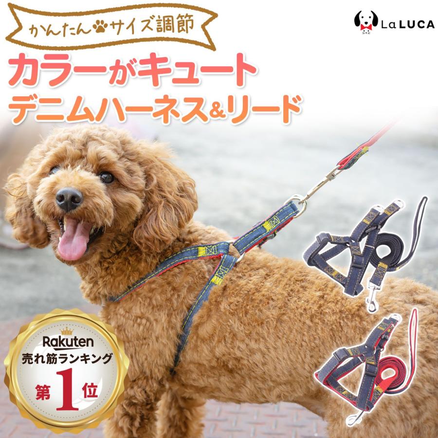 犬 ハーネス 定番 スタンダード 犬用ハーネス リード付 デニム ジーンズ おしゃれ 小型犬 中型犬 ドッグ 散歩 かわいい LaLUCA ポイント利用
