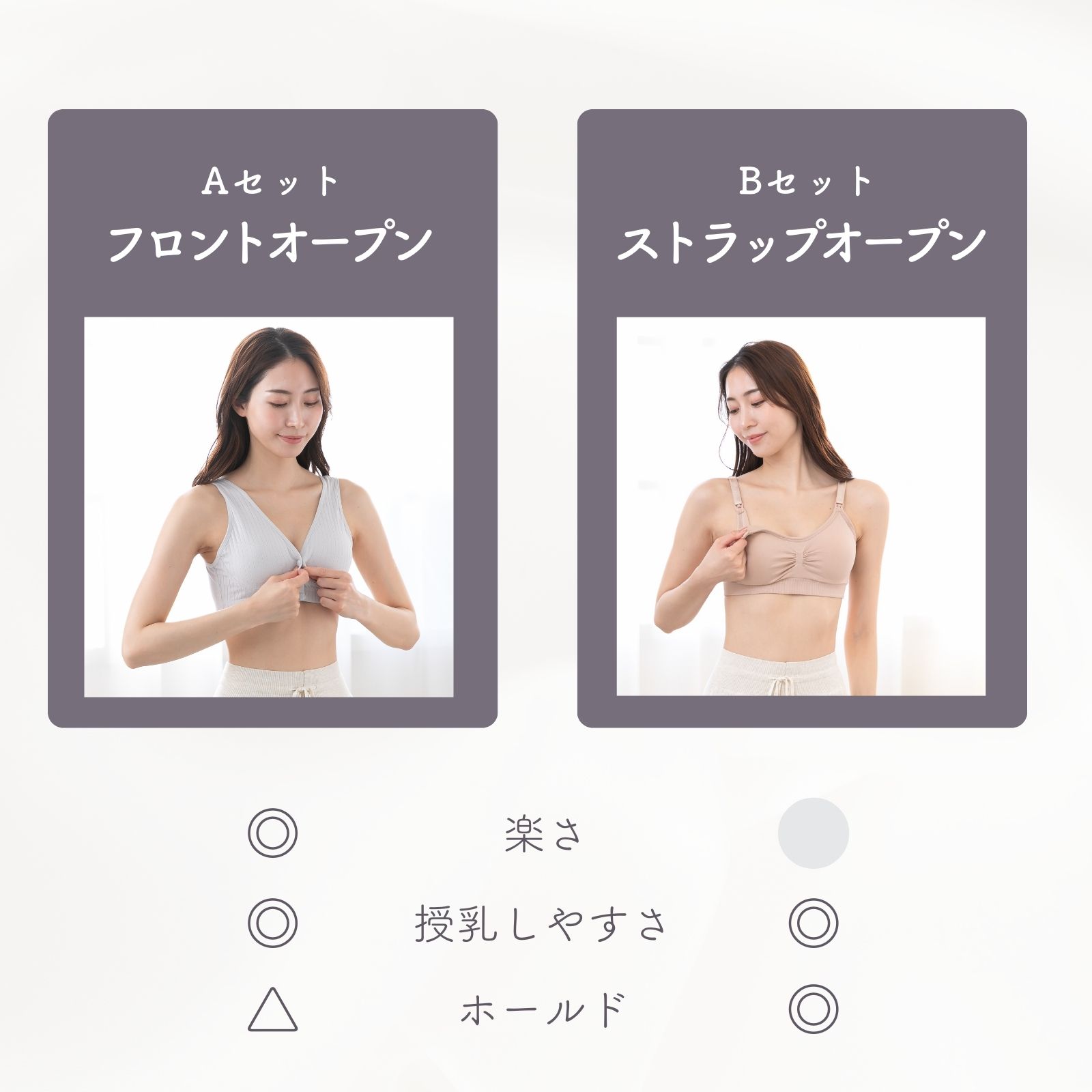 2パターンの授乳ブラ。