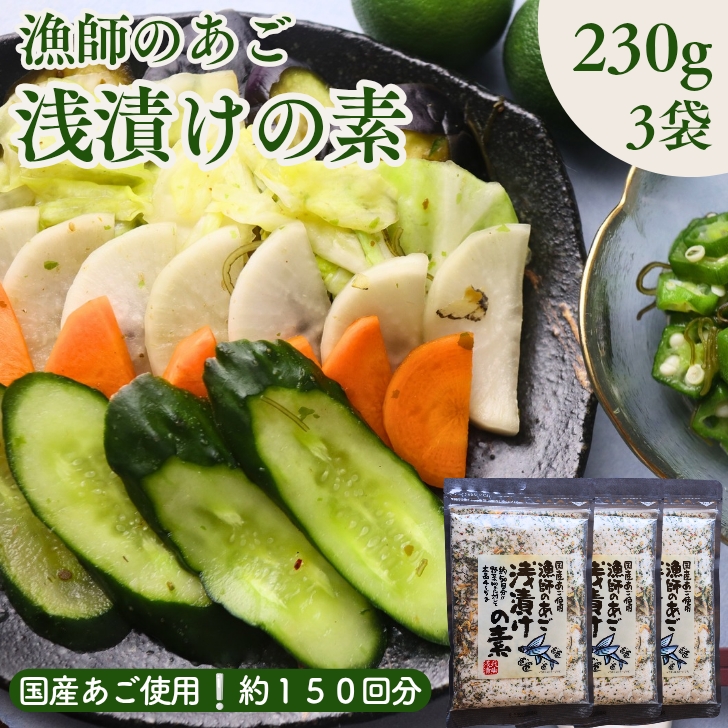 漁師のあご 浅漬けの素 690g【お得 な 230g × 3袋 セット】国産 飛魚 めかぶ 昆布 鰹節 あごだし 調味料 ご飯のお供 常備菜 お漬物 簡単手作り 漬け物の素