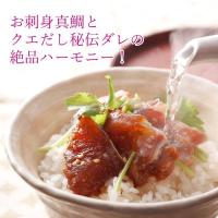 クエ専門店でしかできない幻の高級魚クエのだしが入った真鯛の生茶漬けです。